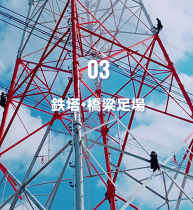重量物搬入・据え付け工事、足場工事・解体、鉄塔・橋梁足場工事を中心に、優れた技術と経験を駆使し、安全・迅速・丁寧な作業を行います。 重量物の搬入・据付工事は安心してお任せください。